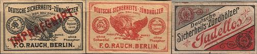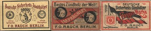 1.) F. O. Rauch, Berlin, auch "Zündholzfabrik Berlin" von 1843 - nach 1910, ab 1895 Großhandel mit Zündhölzern, Zündwaren, Kohleanzündern (B224)