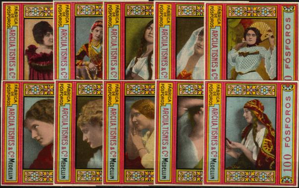 hier handelt es sich um 10 verschiedene Glanz-ZH-Etiketten "Arcila, Tisnes & Co., Medellin" 100 Fosforos