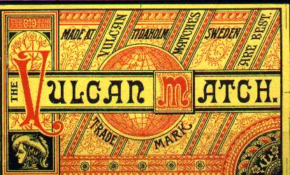 36: Zündholzetikett der schwedischen ZH-Fabrik Vulcans Tidaholm = € 3,00