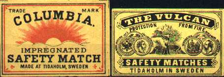 41: Zündholzetiketten der schwedischen ZH-Fabrik Vulcans Tidaholm = € 6,00