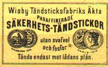 65: Zündholzetikett der schwedischen Zündholzfabrik Wisby = € 25,00