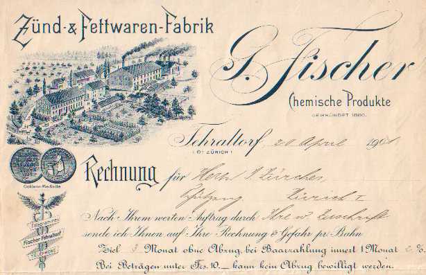 Rechnung der Fabrik G. Fischer, Fehraltorf / Schweiz aus dem Jahre 1901