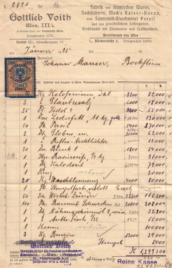 Gottlieb Voith, Wien Großhandel mit Zündhölzern