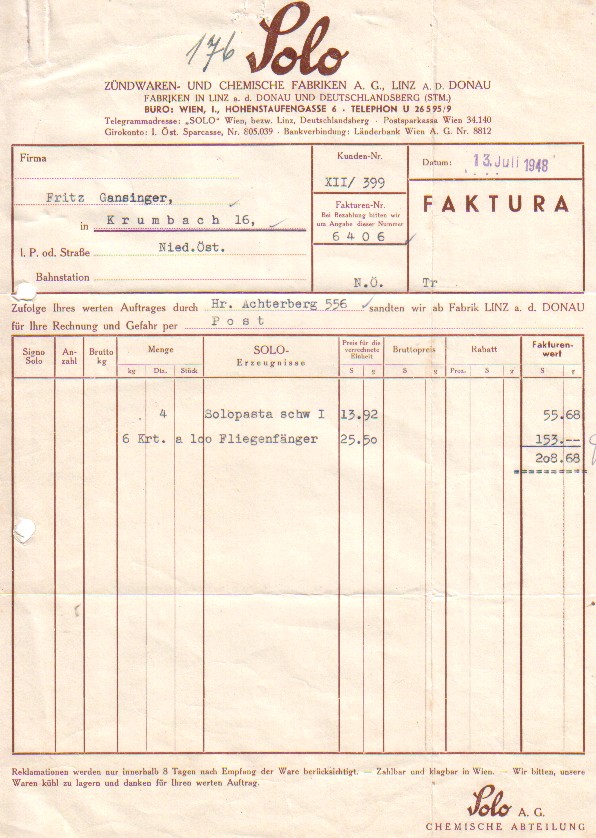 Solo Zündwaren- und Chemische Fabriken A. G., Linz a.d.Donau