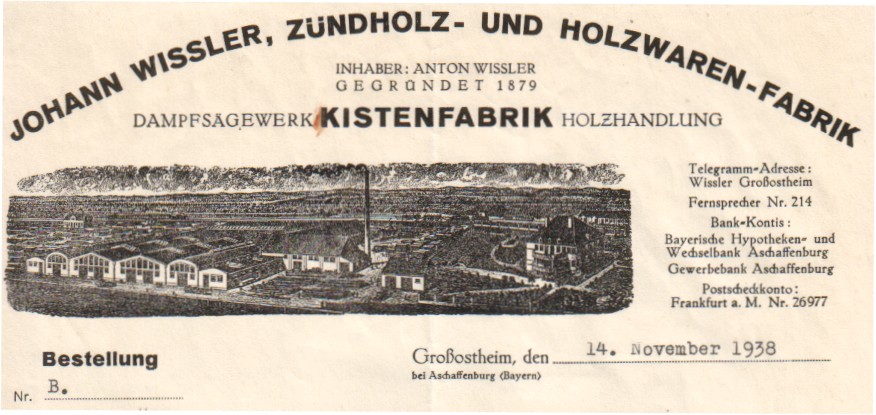 Rechnung der Firma Johann Wissler, Zündholz- und Holzwaren-Fabrik (G180)