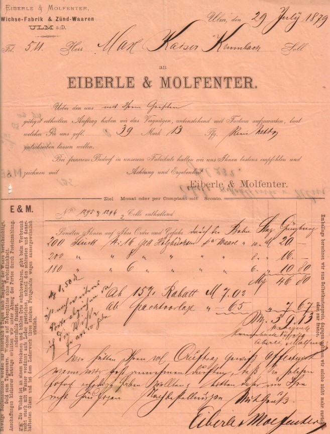 Eiberle & Molfenter Wichse-Fabrik & Zünd-Waaren Ulm a/D. (U110)