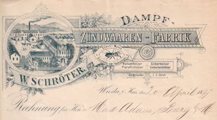 Dampf-Zündwaaren-Fabrik W. Schröter, Wieda (W150)