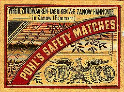 Vereinigte Zündwaarenfabriken AG, Zanow - Hannover von 1890 - 1897 (Z110)